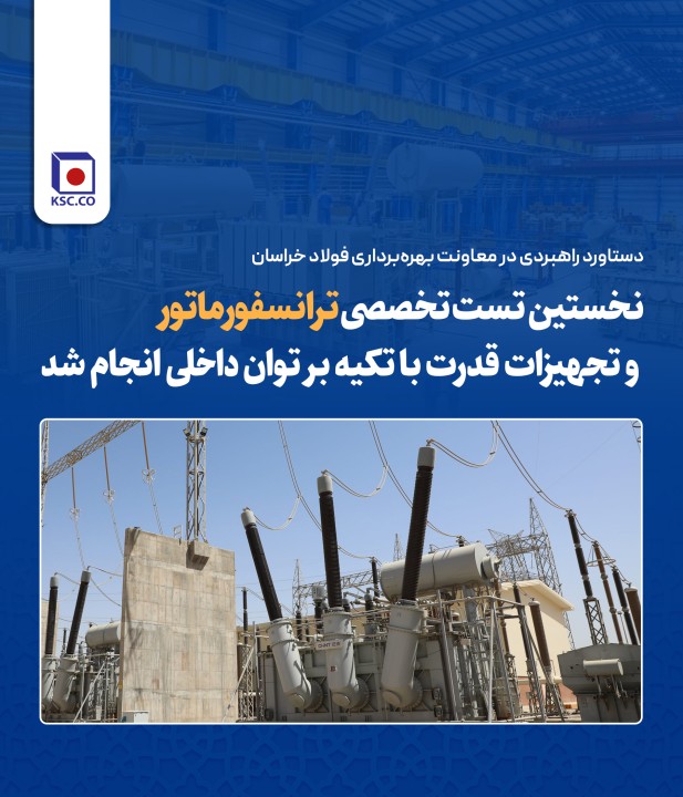 مدیر دفتر فنی و برنامهریزی مجتمع، با تقدیر از تلاشهای کارشناسان حوزه پایش وضعیت گفت: «انجام نخستین تست الکتریکال ترانسفورماتورها در داخل مجموعه، یک دستاورد راهبردی در حوزه نگهداشت و نشاندهنده بلوغ فنی و اتکا به توان داخلی فولاد خراسان است.