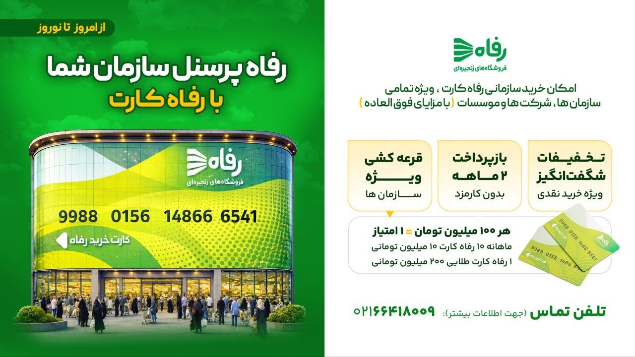 بر اساس این طرح، سازمانها میتوانند با استفاده از رفاهکارت، از تخفیفات ویژه خرید نقدی، بازپرداخت دوماهه بدون کارمزد و شرکت در قرعهکشی ویژه سازمانها بهرهمند شوند.