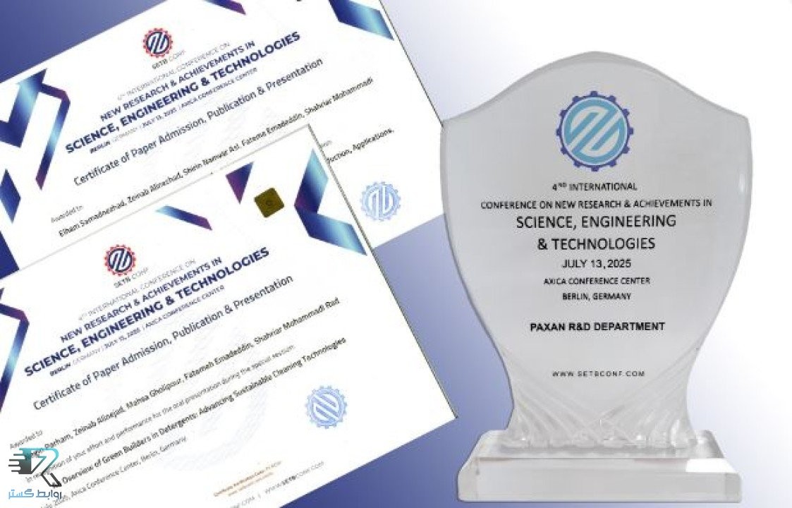 واحد تحقیق و توسعه این شرکت در چهارمین کنفرانس بینالمللی پژوهشها و دستاوردهای نو در علوم، مهندسی و فناوریهای نوین که در تاریخ 13 ژوئیه 2025 (22 تیر 1404) در شهر برلین آلمان برگزار شد، با ارائه دو مقاله علمی تخصصی در حوزه شوینده، مهندسی شیمی و محیط زیست پایدار، موفق به دریافت گواهینامه علمی و تندیس این رویداد بینالمللی شد.